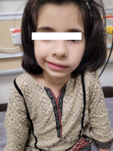 left eye not closing fully, she could not show her teeth fully due to the weakness