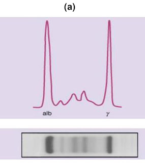 They are found in multiple myeloma disorders and may arise from any of the immunoglobulin classes. Monoclonal light chains are produced in 50% of myeloma and in only 15% heavy chains are found. Increased amount of light chain protein (monoclonal) is excreted in urine as Bence jones protein of type λ. In this case, urine electrophopresis shows very sharp band at the γ- region as seen in Figure 2