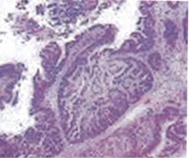 The hemogram revealed hemoglobin of 10.8 gm/dl and her TLC and platelets were normal . Her renal functions and liver functions were normal .Keeping in view non healing nature of this umbilical swelling , biopsy was done from the edge of the nodule which showed metastatic adenocarcinoma .Fig2 .Hence the nodule proved to be sister Mary Joseph nodule .