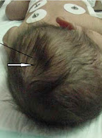 APGARSCORE ( Appearance, Pulse, Grimace, Activity,and Respiration.) was 7 and 9 at 1 and 5 minutes. The birth weight was 2.7 kg. His head circumference was 33.5 cm, and length 50 cm.